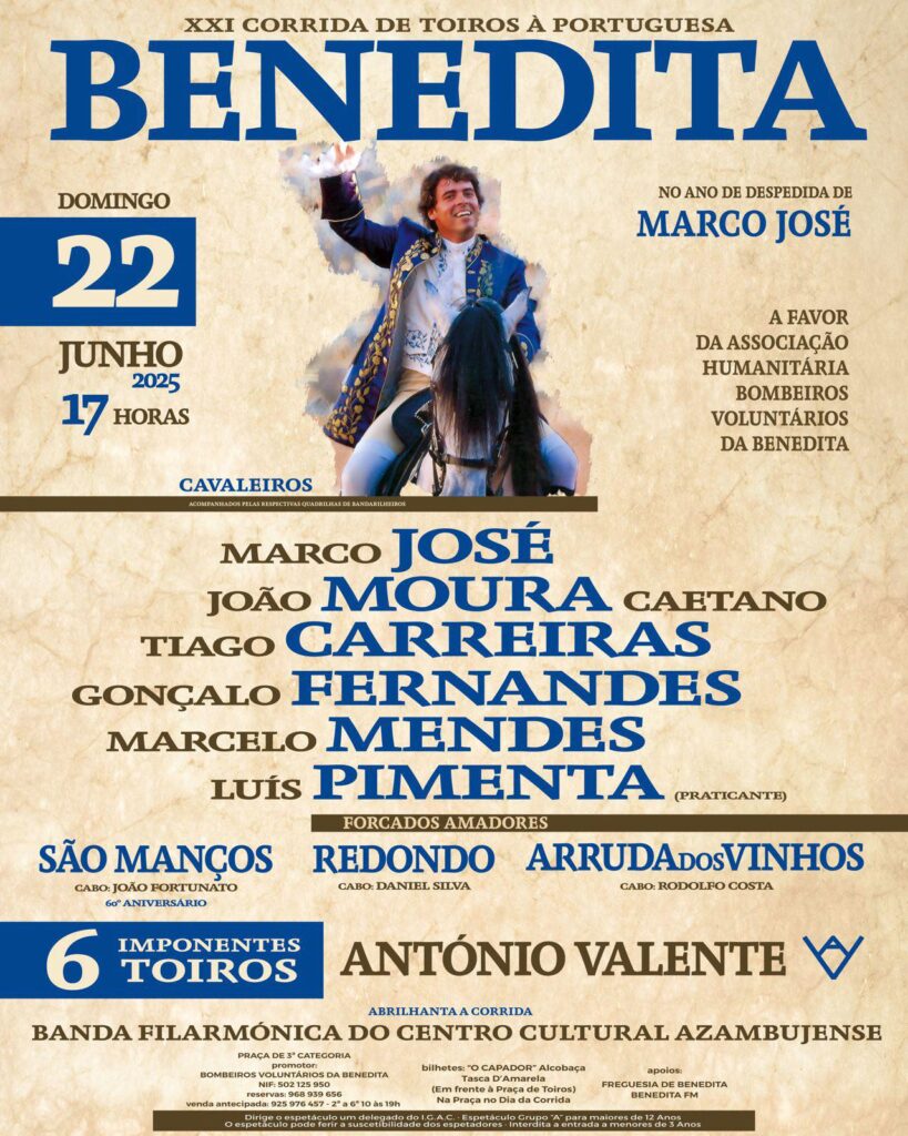 No próximo domingo, dia 22 de junho de 2025, a Praça de Toiros da Benedita volta a ser palco da tradicional Corrida de Toiros à Portuguesa, este ano com um sabor especial: Marco José despede-se da afición beneditense naquela que será uma das últimas atuações da sua carreira.